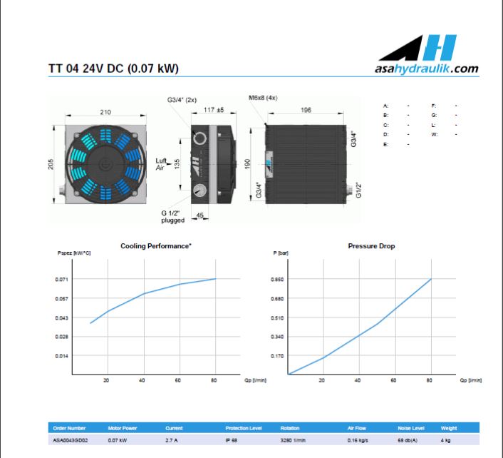 AS043GD02 Oil Air Blast Oil Cooler ASA0043GD02 24 Volt