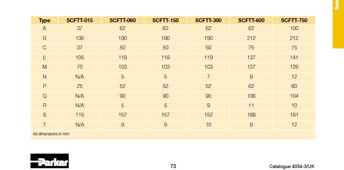 Parker Sensocontrol SCFTT-060-C2-05 FLOW/TEMP Turbine unit only