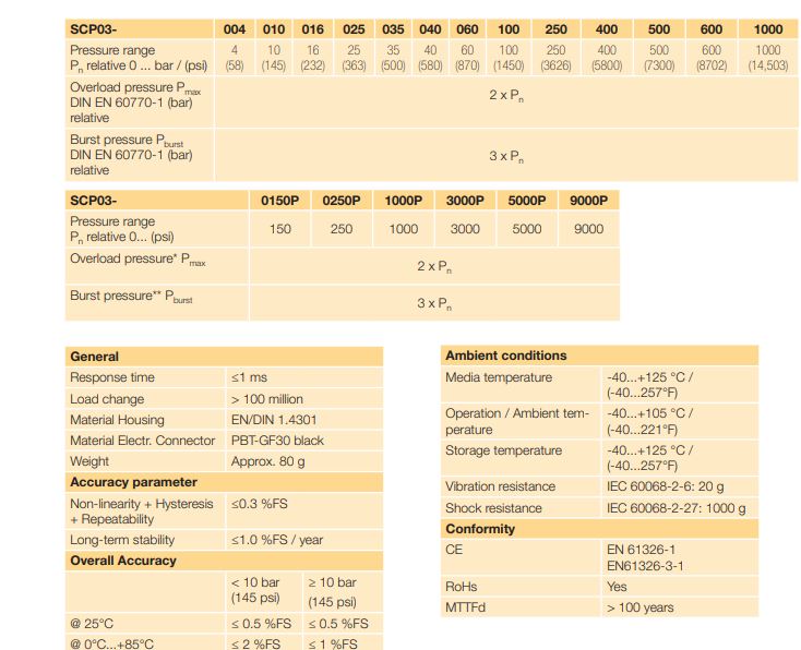 SCP03-400-24-06 Pressure Sensor 0-400Bar range