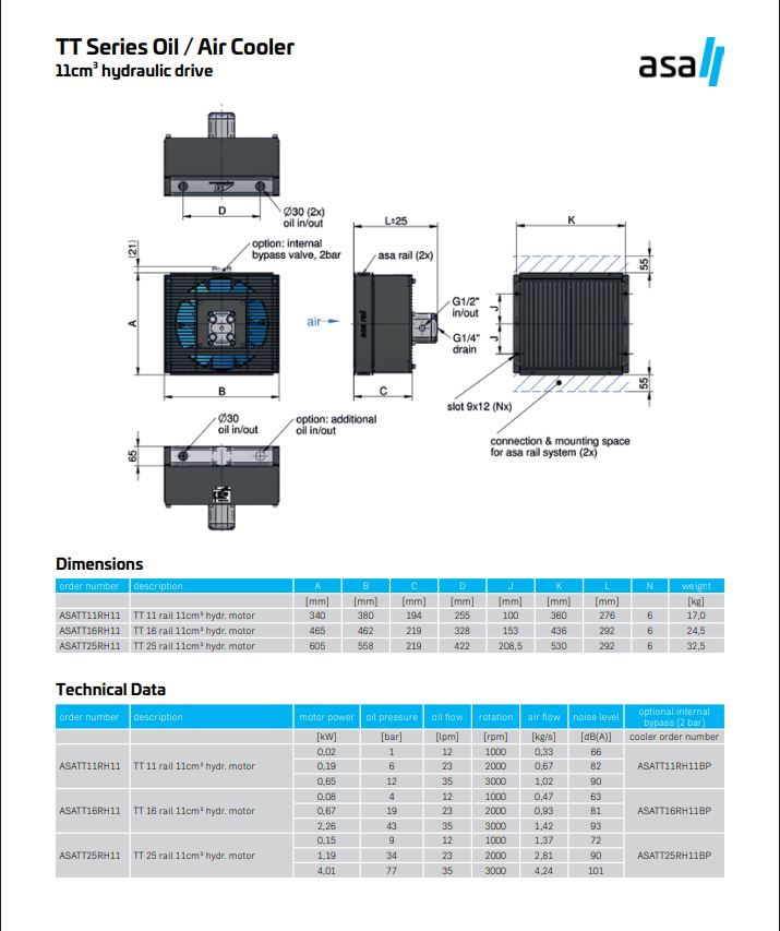 TT 25 rail Hydraulic motor Air Blast Oil Cooler TT25RH11 0.15KW